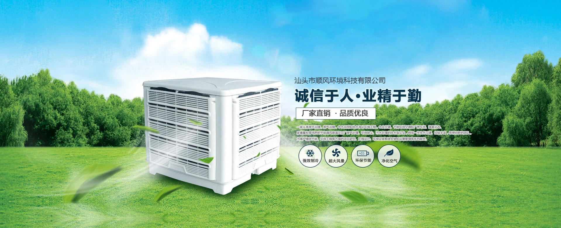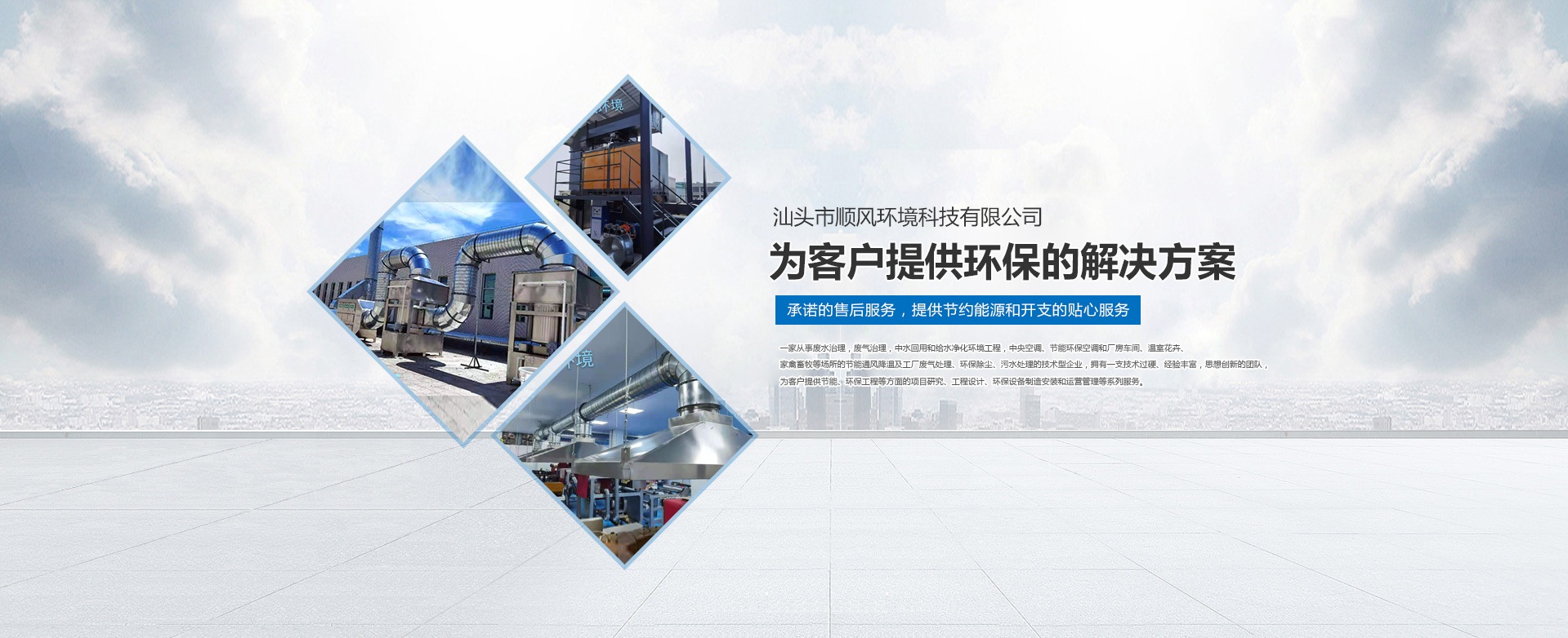 汕頭市順風環(huán)境科技有限公司,是一家專注從事廢水治理,廢氣治理,中水回用和給水凈化環(huán)境工程,中央空調(diào)、節(jié)能環(huán)保空調(diào)和廠房車間、溫室花卉、家禽畜牧等場所的節(jié)能通風降溫及工廠廢氣處理、環(huán)保除塵、污水處理的技術型企業(yè),擁有一支技術過硬、經(jīng)驗豐富,思想創(chuàng)新的團隊,為客戶提供節(jié)能、環(huán)保工程等方面的項目研究、工程設計、環(huán)保設備制造安裝和運營管理等系列服務。 多年來,公司堅持 “ 誠信于人,業(yè)精于勤” 的宗旨,憑借豐富的工作經(jīng)驗及雄厚的技術實力為多家大型公司、工廠、養(yǎng)殖、超市等大型綜合場所進行節(jié)能通風降溫及廢氣處理、污水處理等工程設計、安裝、維修、年度保養(yǎng),得到了顧客的一致好評并長期合作。